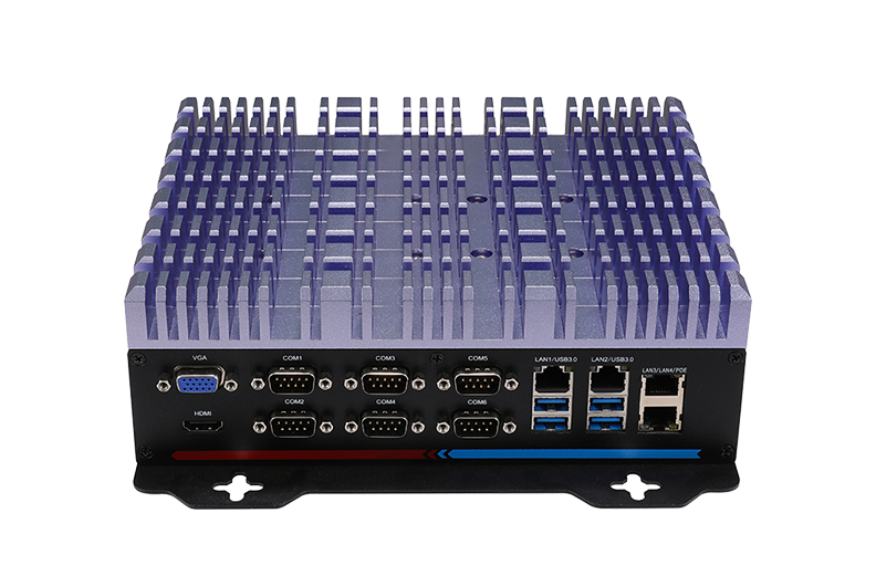 ●接口豐富 6*USB3.0,32* GPIO(16*GPI,16*GPO),1*遠程開關,1*VGA,1*HDMI,支持雙屏同步異步顯示,標配4*Intel LAN,6*COM(標配6*RS232,COM1-2可選RS232/422/485),支持1*M.2(2242/2260/2280,SATA SDD),1*2.5寸硬盤位,2*MINI PCIE(支持WiFi或擴展卡),1*SIM槽,2*M.2(支持1*M.2 2242 Sata SSD 和1* 5G/3052或 4G/3042模塊),6*天線孔