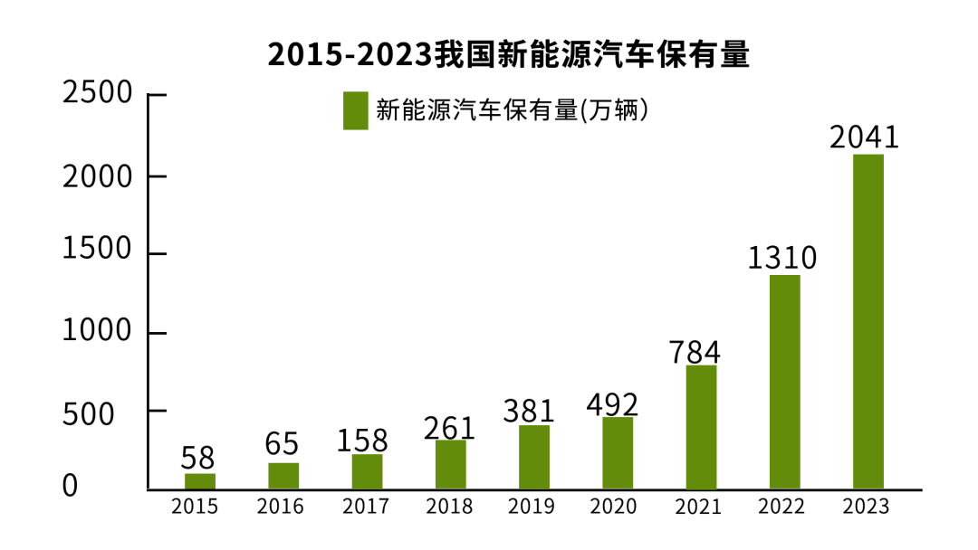 隨著早期銷售的新能源汽車逐漸到達質保期限,動力電池正陸續進入回收利用階段。數據顯示,2018年,國內新能源汽車保有量為261萬輛,截至2023年末,我國新能源汽車保有量已達到2041萬輛。與之相應的是,數量龐大的動力電池正在涌入回收行業。